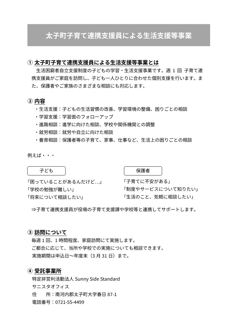 太子町子育て連携支援員による生活支援等事業